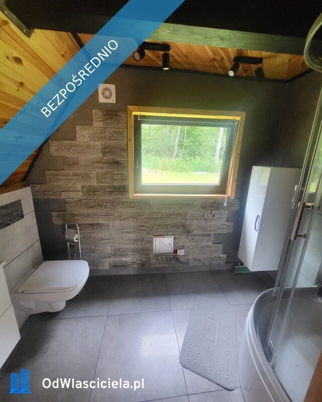 Na parterze znajduje się duży salon z kuchnią, łazienka z prysznicem, umywalką i wc, duży taras.