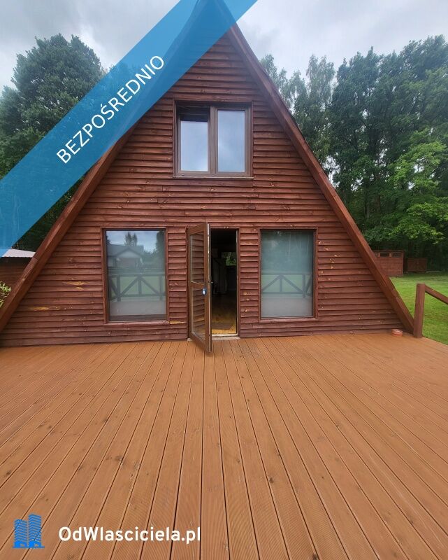 Domek położony jest w sąsiedztwie dwóch domków letniskowych.